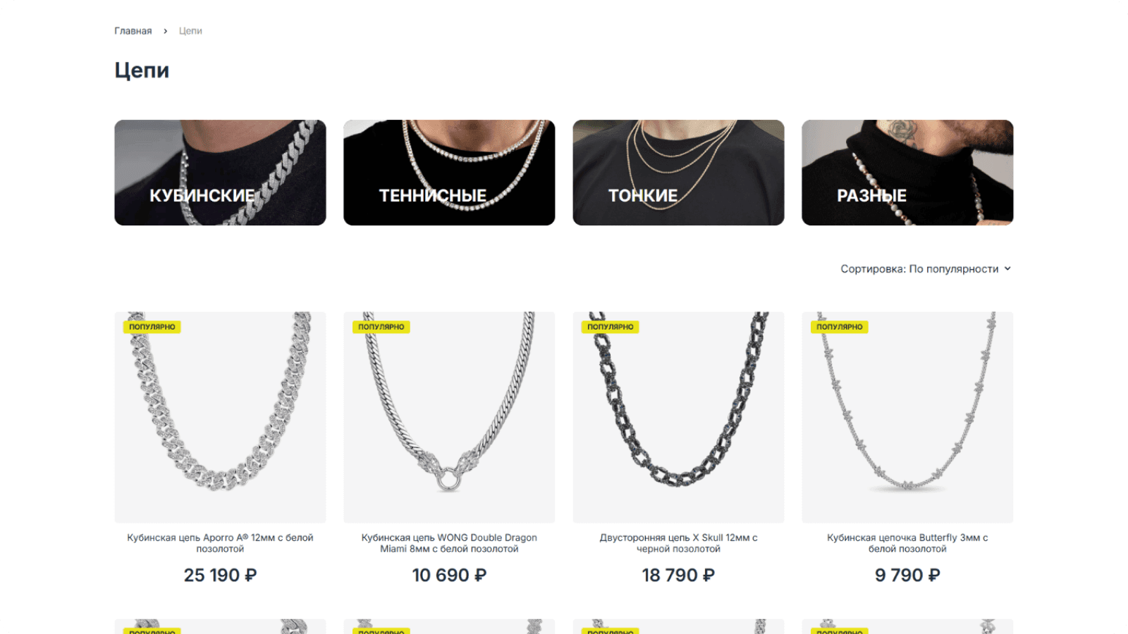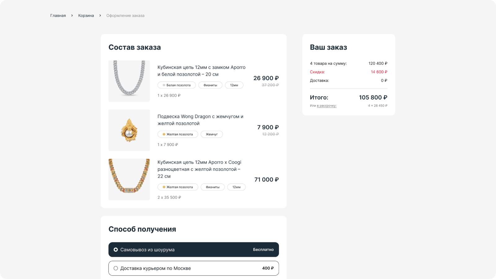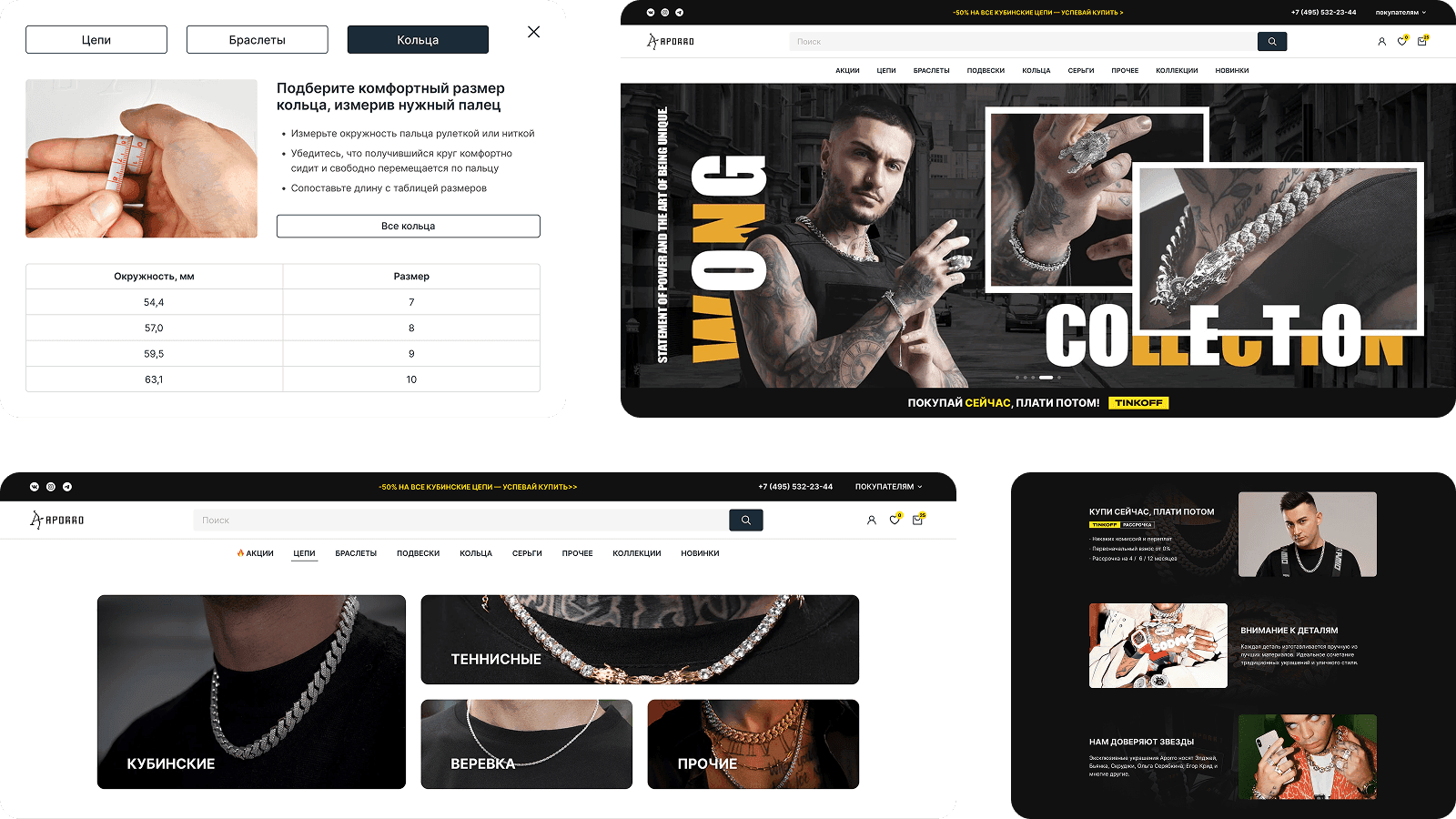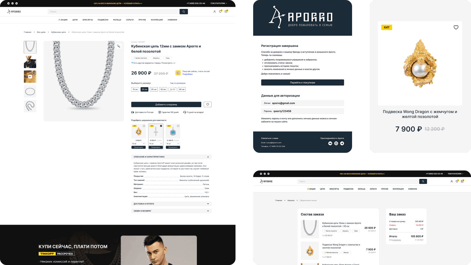 После утверждения концепта прорабатываем каждую страницу, от карточки товара до 404