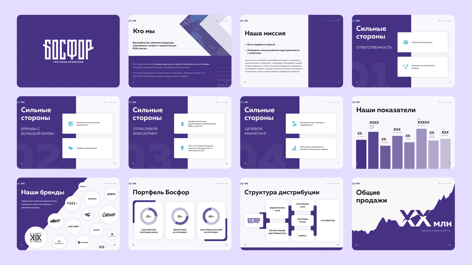 Создаём стиль и визуальный язык будущей презентации. Подбираем цветовую палитру, типографику и графические приёмы, которые подчеркнут характер бренда и задачу презентации.