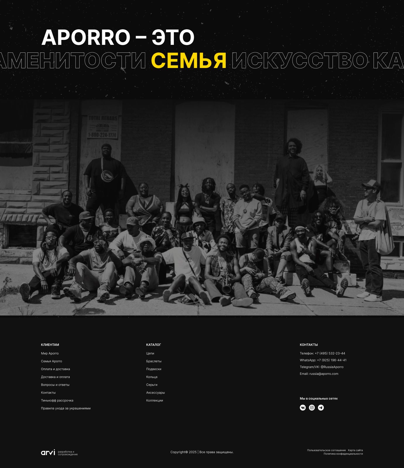 Отдельно сделали акцент на том, что у Aporro сильное комьюнити: артисты, инфлюенсеры и клиенты по всему миру называют себя «семьёй Aporro». На лендинге мы показали живые кадры и истории, где украшения уже встроены в жизнь людей — концерты, студии, улица. Так лендинг становится не рекламным буклетом, а портретом сообщества, в которое хочется попасть.