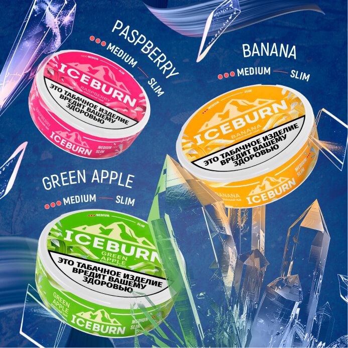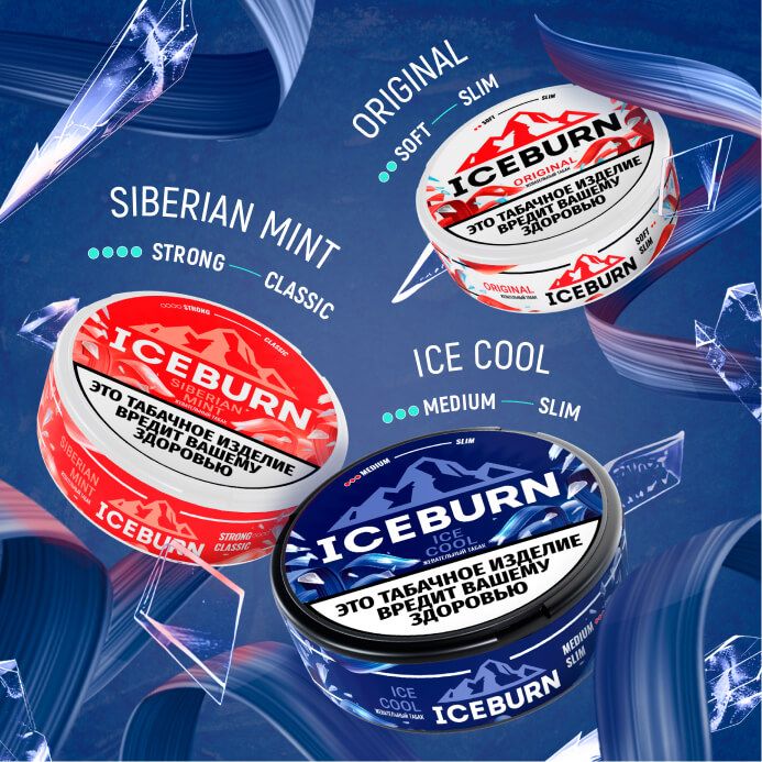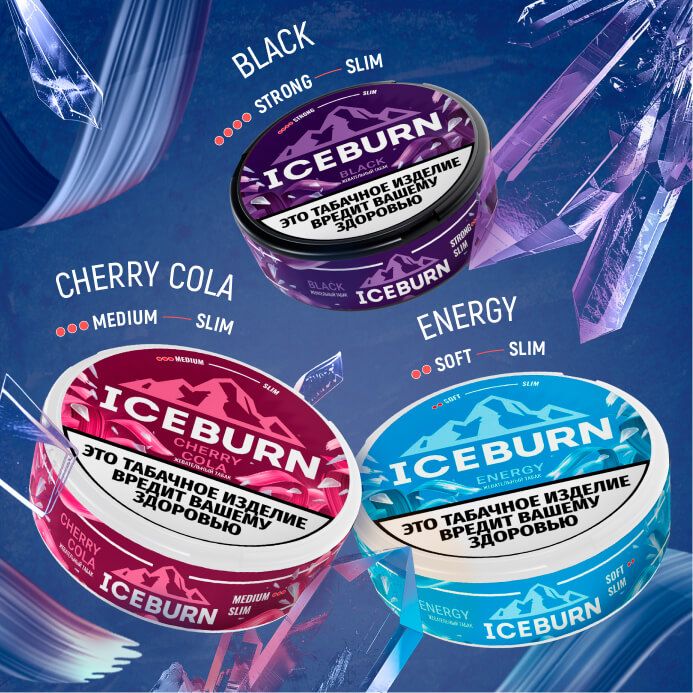 Iceburn — бренд жевательного табака с запоминающимся характером. Каждый вкус — отдельная субкультура, каждая линейка — визуальное заявление. Нам нужно было поддержать эту стратегию через промо-графику.