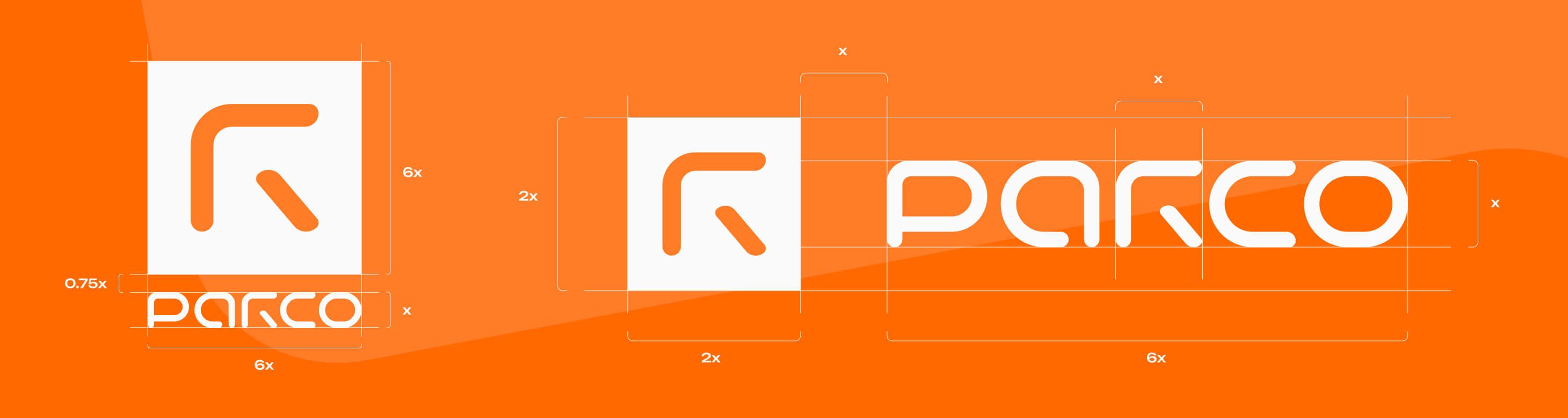 Логотип и брендбук Parco, решающие задачи задачи продукта, интерфейса и ритейла