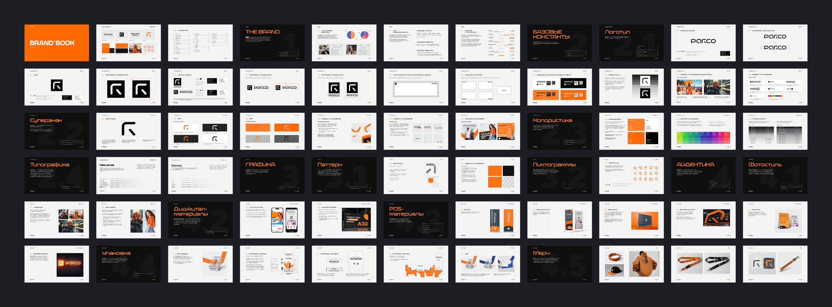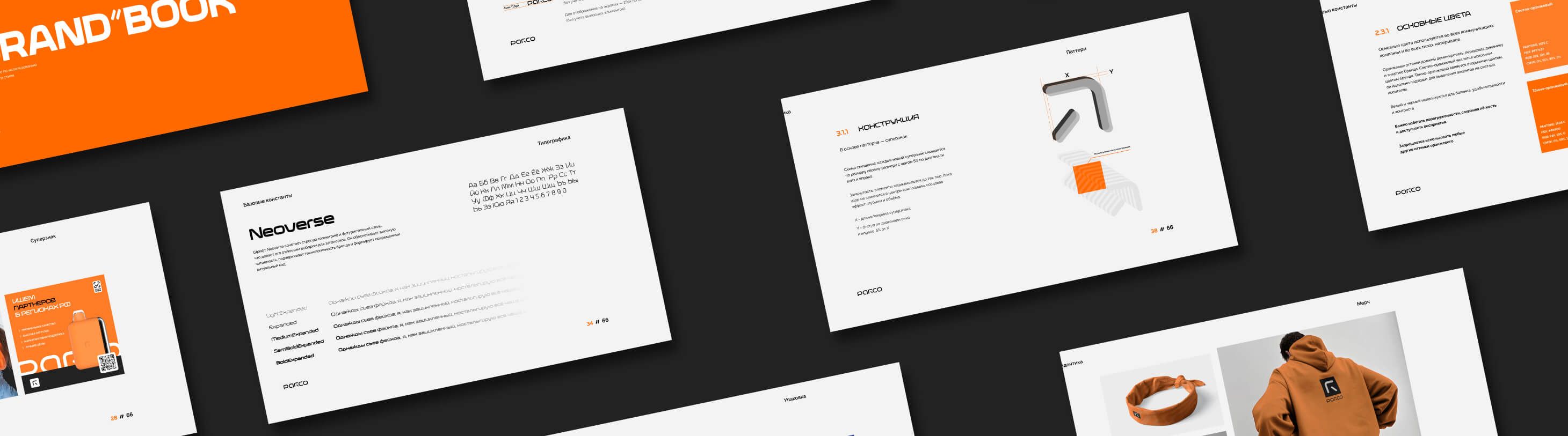 Брендбук — это не просто техническое руководство. Это артефакт бренда, визуальный документ, который фиксирует и объясняет систему фирменного стиля. Он рассказывает, как работает логика дизайна, как взаимодействуют элементы, и почему стиль Parco выглядит именно так.