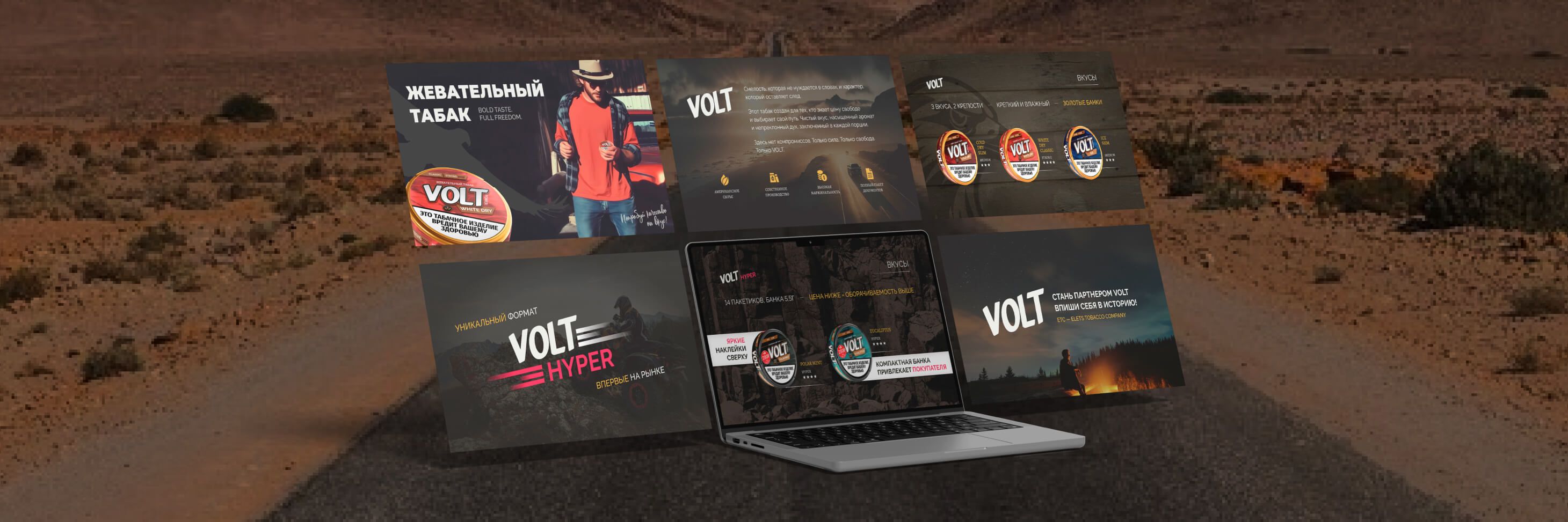 VOLT — смелый бренд жевательного табака из американского сырья. Наш клиент хотел презентацию, которая цепляет с первого слайда и ведёт по дороге выгоды.
